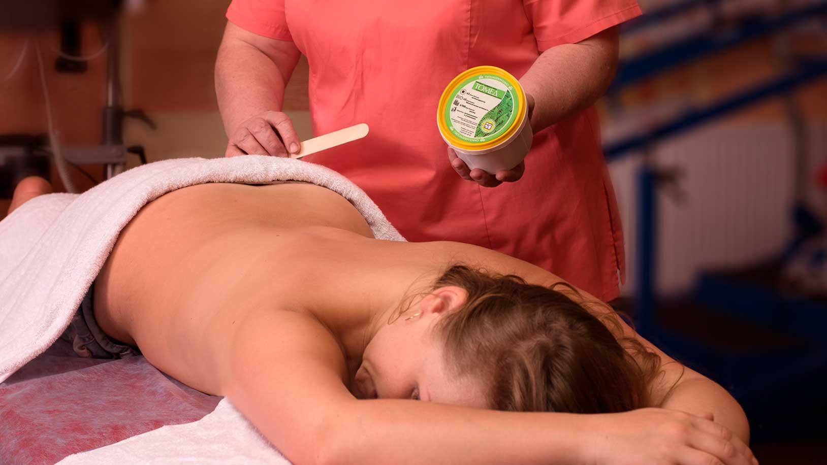 TOMED APPLICAT The therapeutic mud is applied on a areas of the body which need treatment. The product is available in plastic containers of 250 grams, 1 kg, 5 kg and 10 kg. A treated area must be covered with a PET film. The procedure duration is 20–40 minutes. The treatment consists of 10 – 20 procedures. TOMED AQUA Concentrated aqueous solution of humic compounds. Available in 1 L plastic containers. Application: Dilute 200 ml. of TOMED AQUA in 200 liters of water.