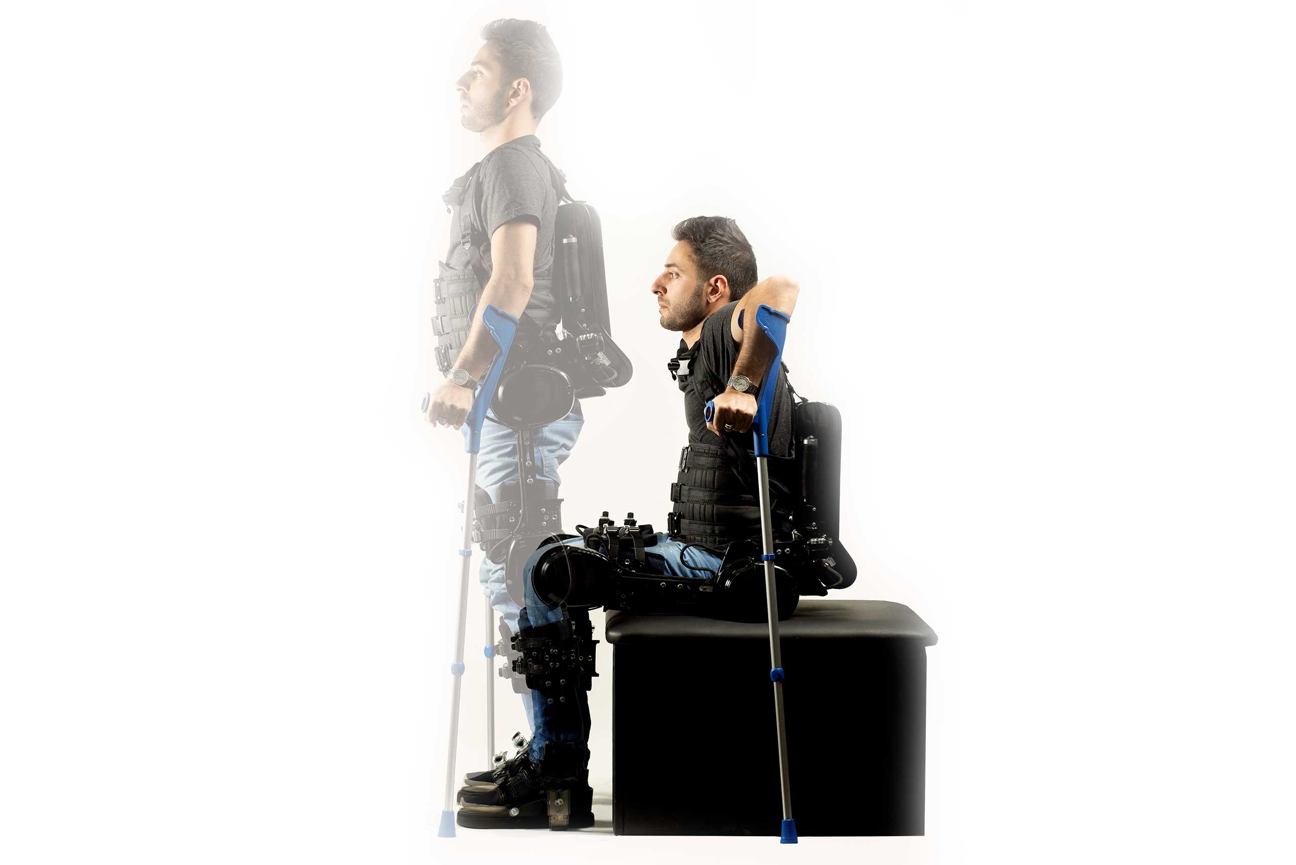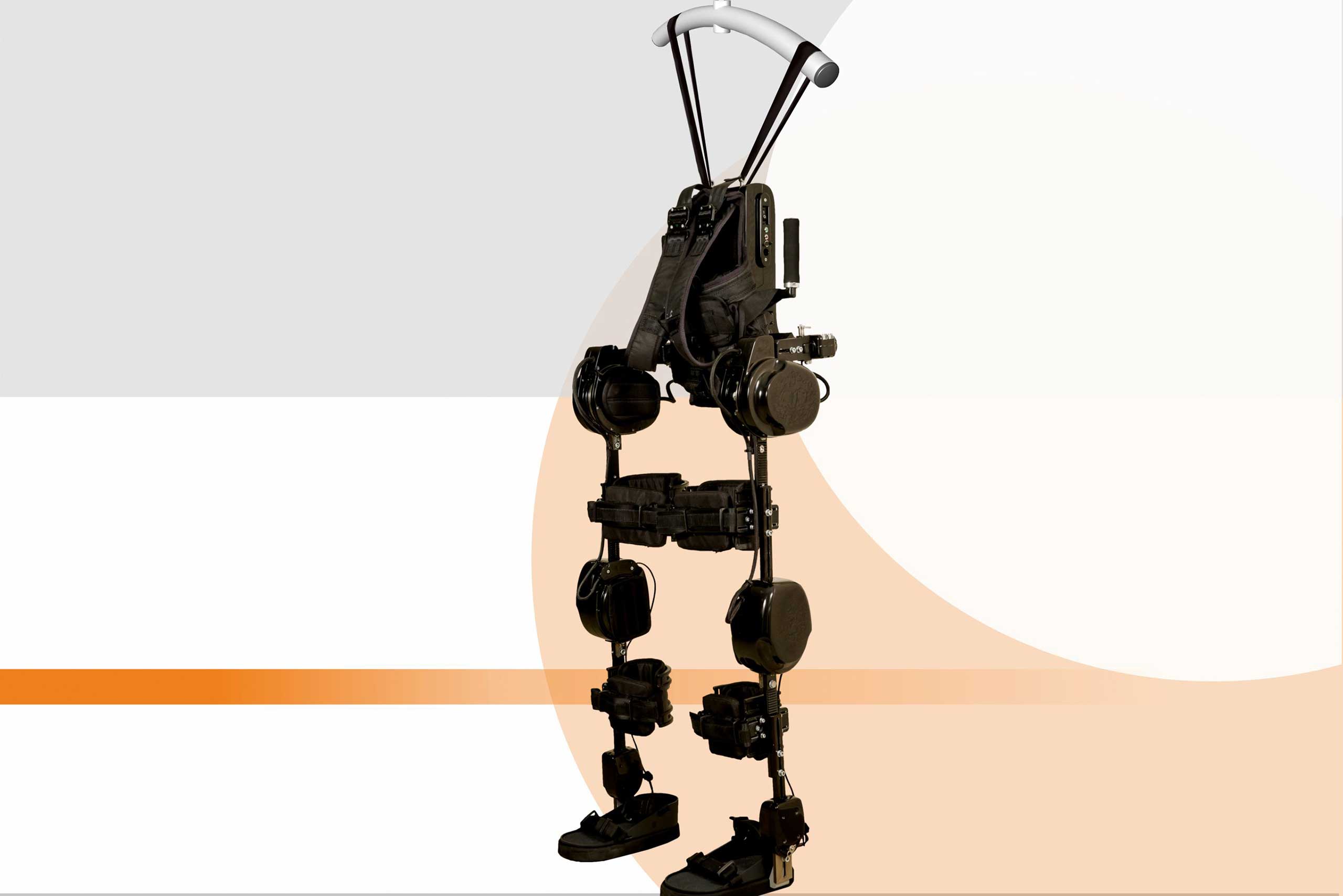 There were designed special gear motors. To realize high autonomy, a special battery was developed, consisting of separate high-current lithium-iron-phosphate cells. Separately, in the design of the exoskeleton, a system of quick settings for the patient is provided, as well as a comfortable seating of the patient, due to abduction of extremity in the horizontal direction.